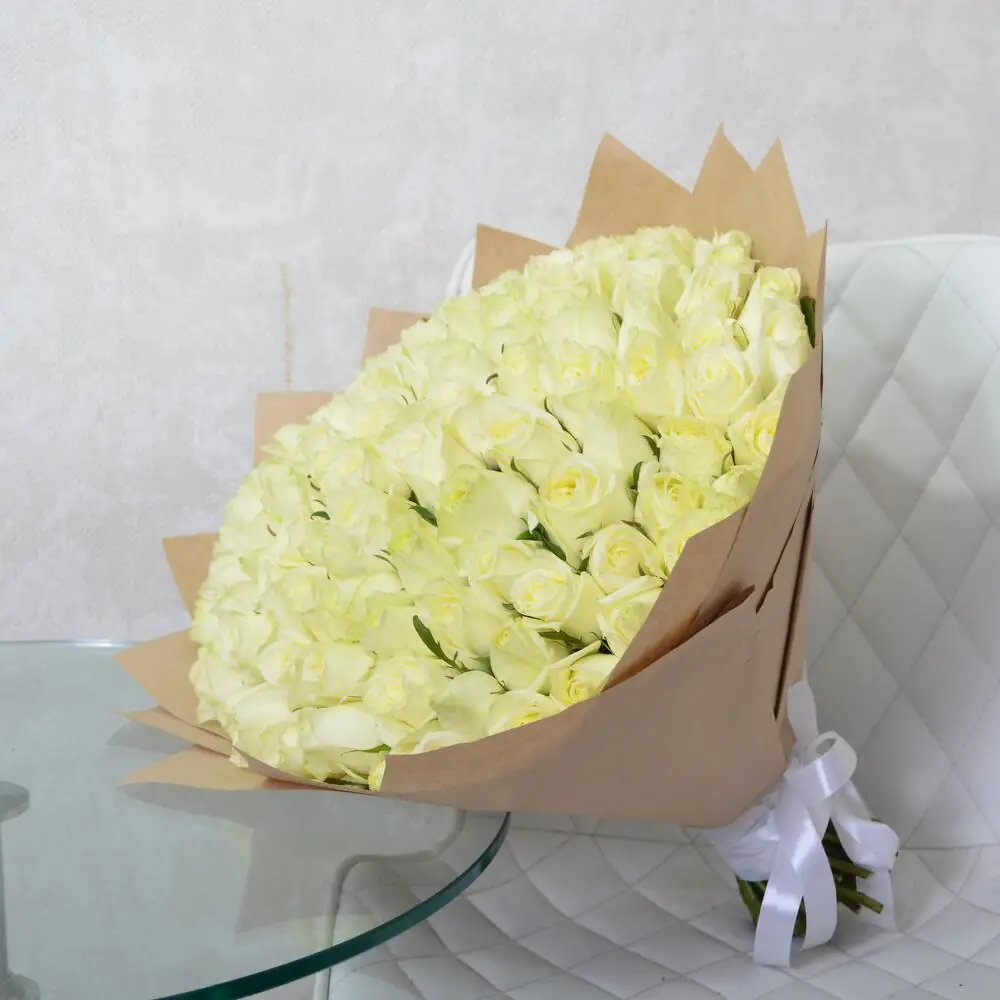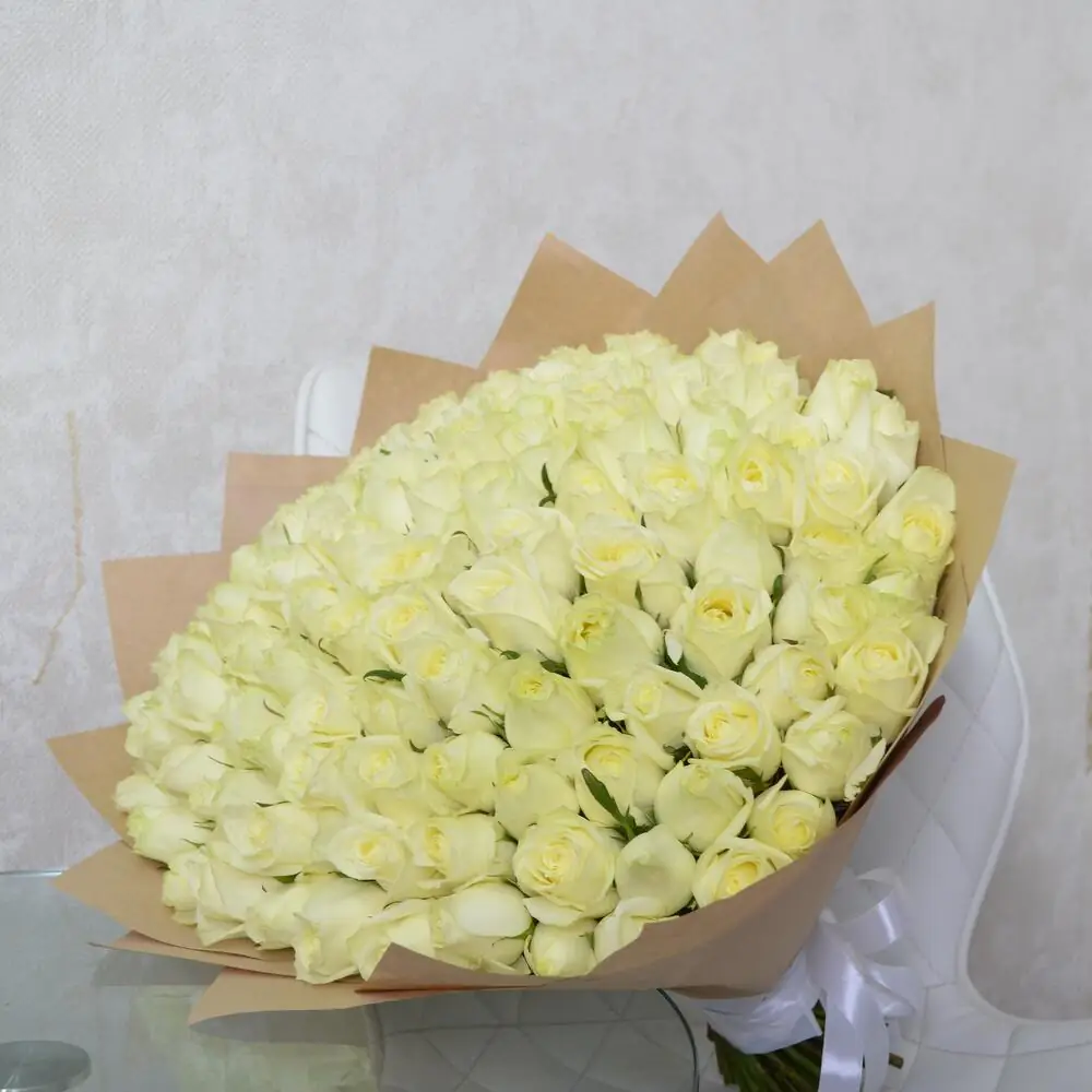 101 Белая роза в крафте — купить по цене от 12209 руб. с доставкой в Нижнем Новгороде