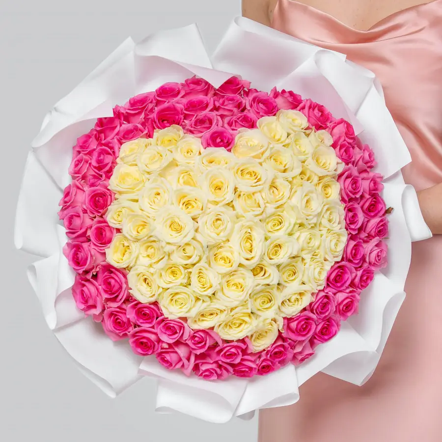 101 Кенийская белая и розовая роза — купить по цене от 12559 руб. с доставкой в Нижнем Новгороде