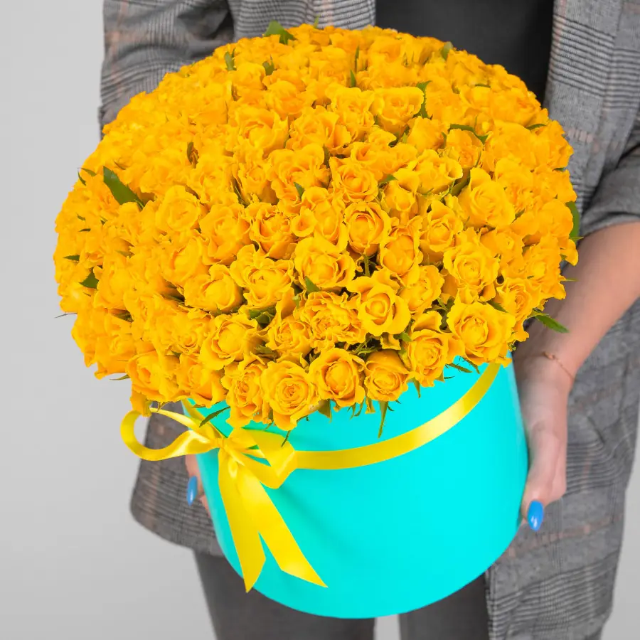101 Кенийская оранжевая роза в шляпной коробке — купить по цене от 13229 руб. с доставкой в Нижнем Новгороде