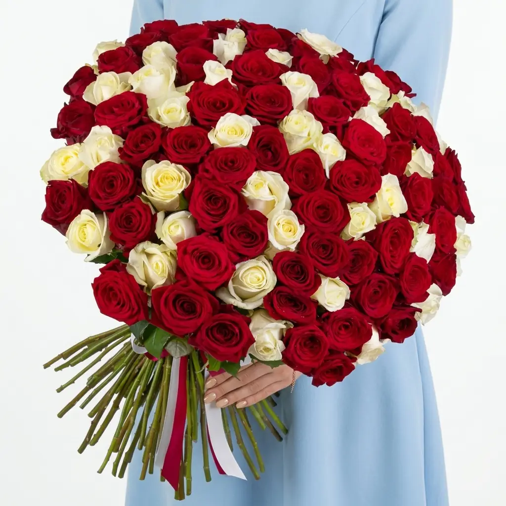 101 Красная и Белая Роза Эквадор — купить по цене от 27160 руб. с доставкой в Нижнем Новгороде