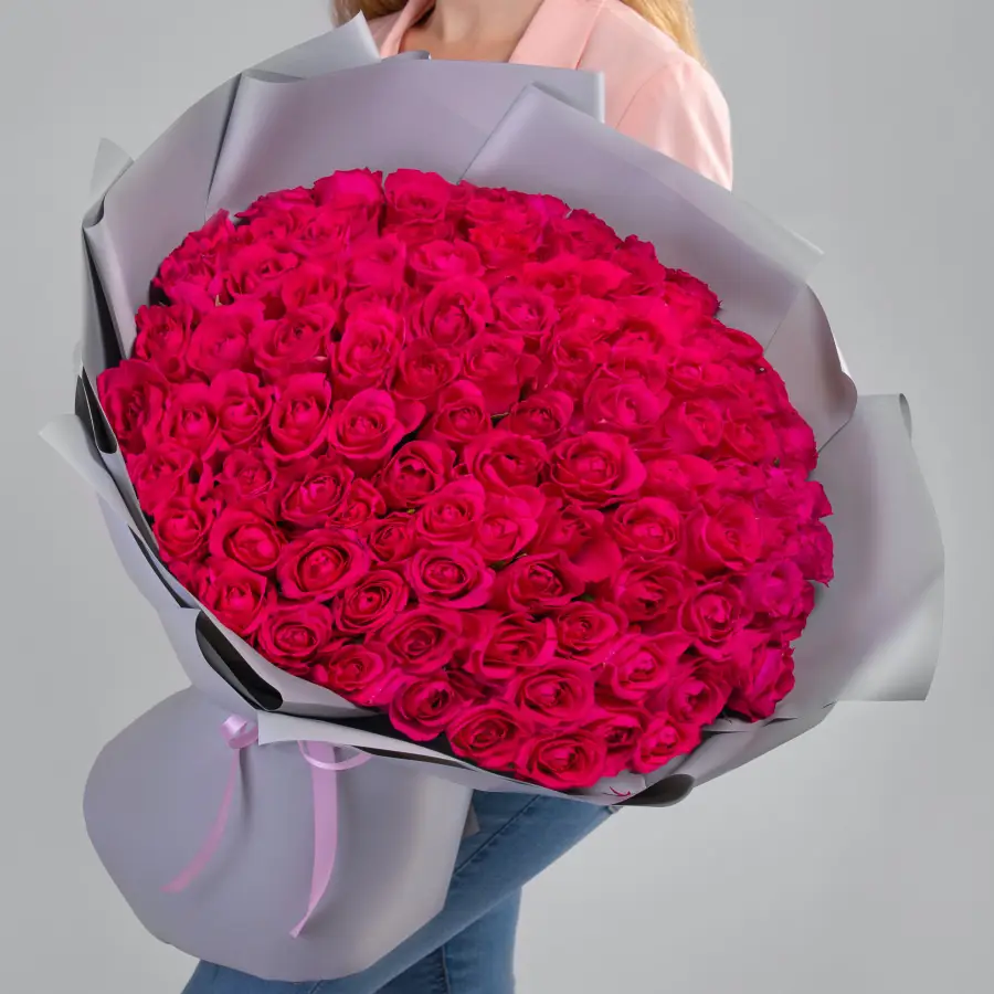 101 Яркая розовая роза в упаковке — купить по цене от 28210 руб. с доставкой в Нижнем Новгороде