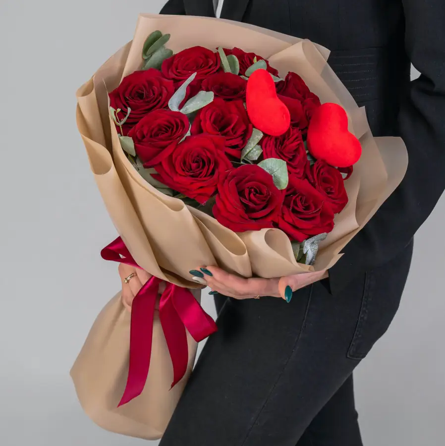 15 Бордовых Роз и Эвкалипт — купить по цене от 3235 руб. с доставкой в Нижнем Новгороде