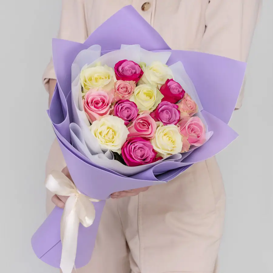 15 Разноцветных Кенийских роз — купить по цене от 2735 руб. с доставкой в Нижнем Новгороде