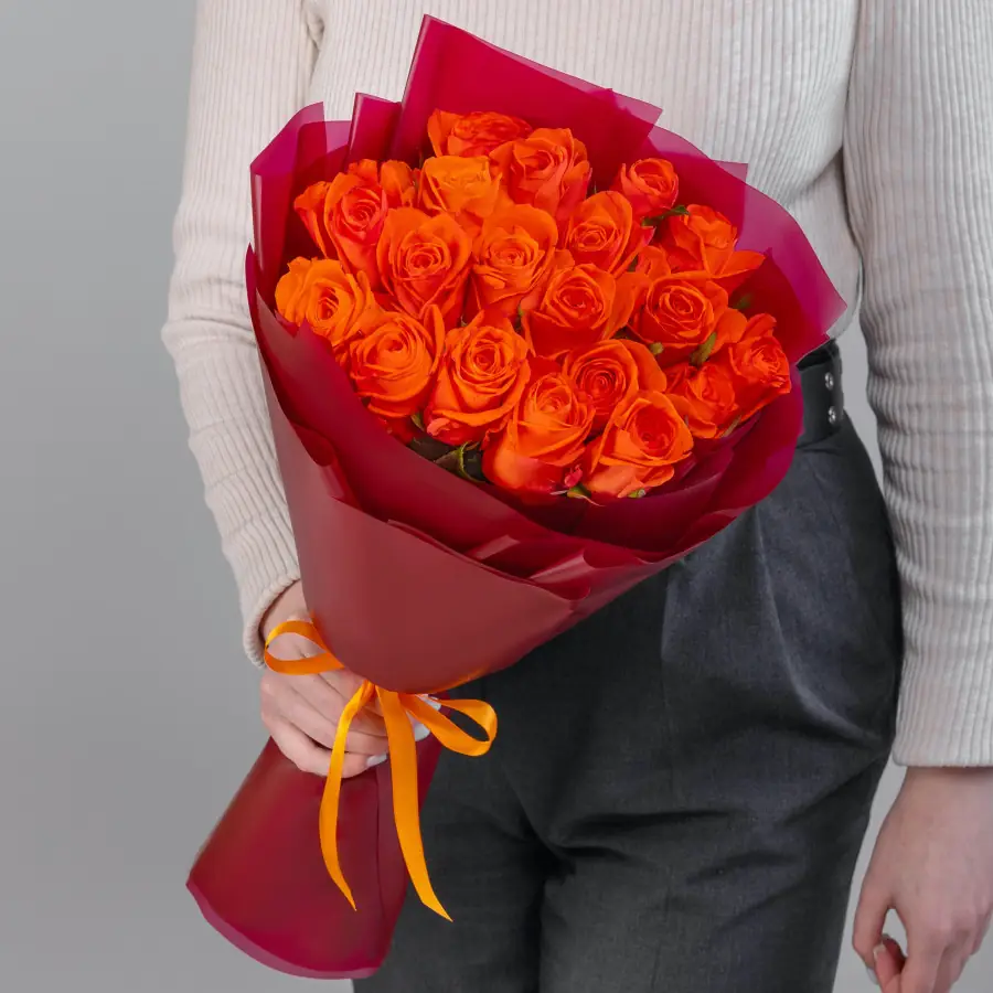 19 Ярко-Оранжевых Роз — купить по цене от 3071 руб. с доставкой в Нижнем Новгороде