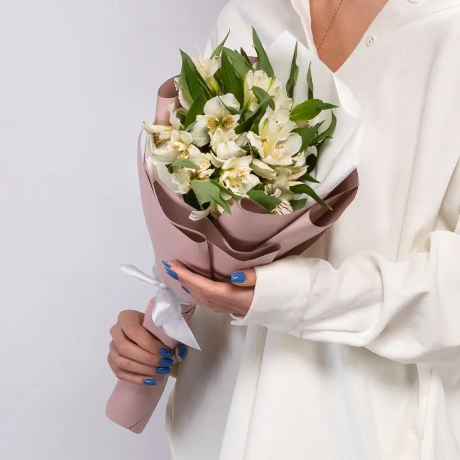 5 Белых Альстромерий в дизайнерской упаковке — купить по цене от 2150 руб. с доставкой в Нижнем Новгороде