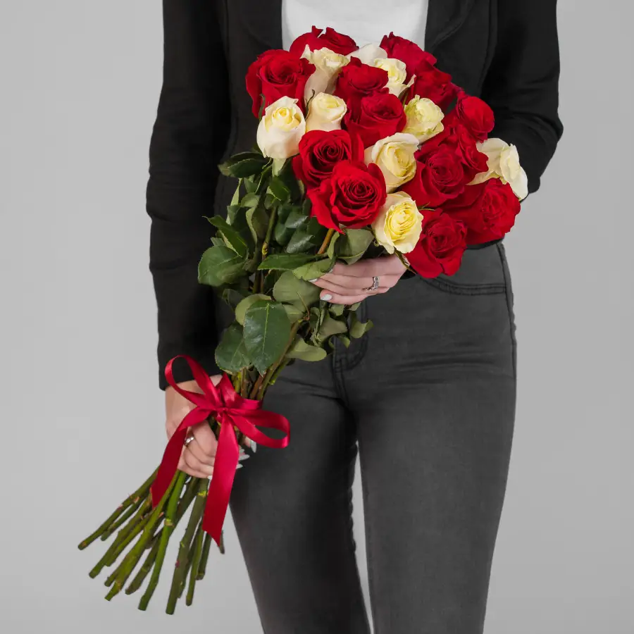 21 Красная и белая роза Эквадор — купить по цене от 6260 руб. с доставкой в Нижнем Новгороде