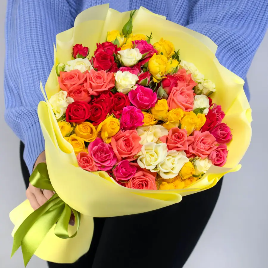21 Разноцветная кустовая роза — купить по цене от 7700 руб. с доставкой в Нижнем Новгороде