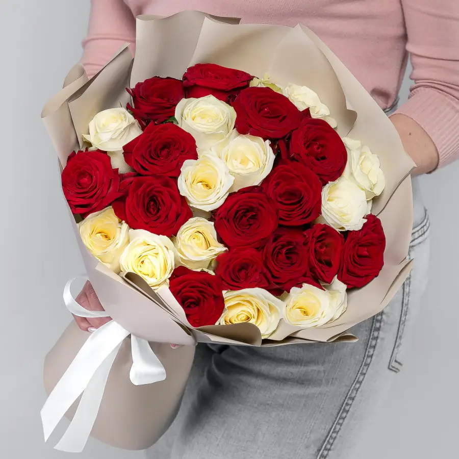 Букет из Красных и Белых Роз в упаковке — купить по цене от 3825 руб. с доставкой в Нижнем Новгороде