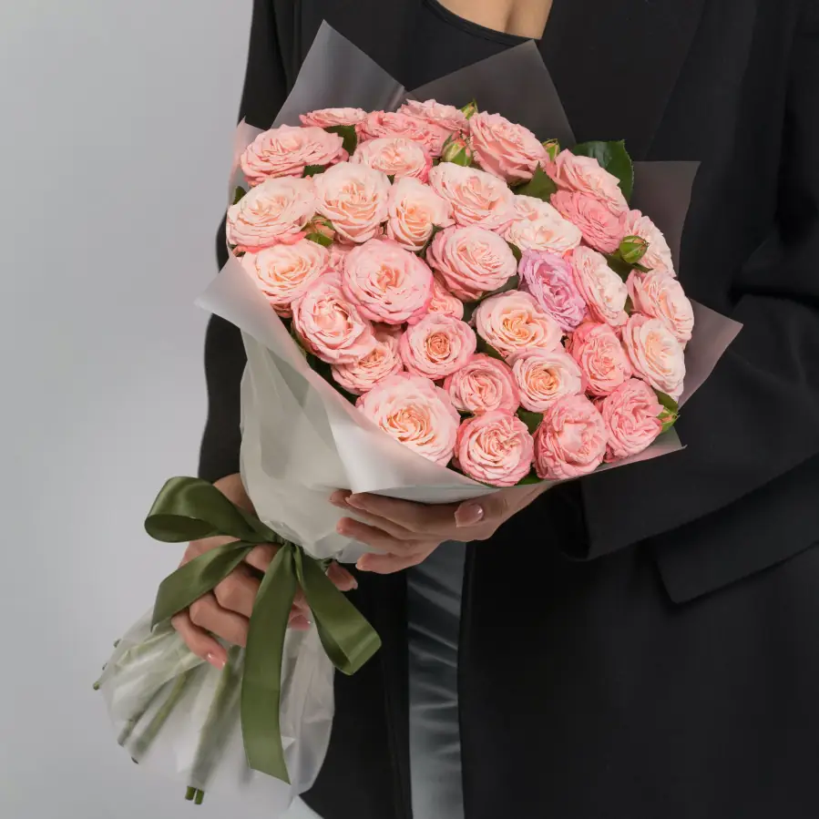 Букет 25 Пионовидных Персиковых Роз — купить по цене от 8600 руб. с доставкой в Нижнем Новгороде