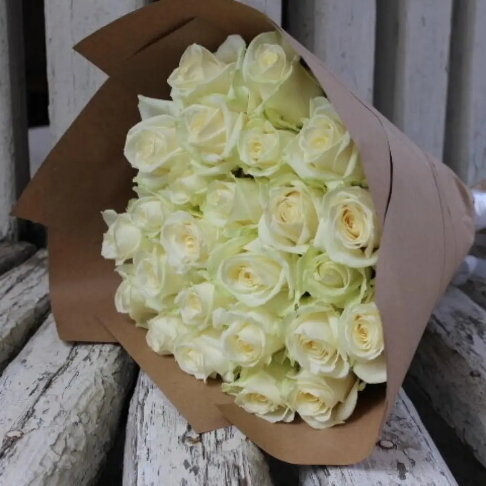 31 Белая роза в упаковке — отличный выбор для подарка! На сайте вы найдете красочные фотографии, которые помогут сделать выбор. Цена букета — 4279 руб.. Закажите 31 Белая роза в упаковке с доставкой в Нижнем Новгороде и по области.