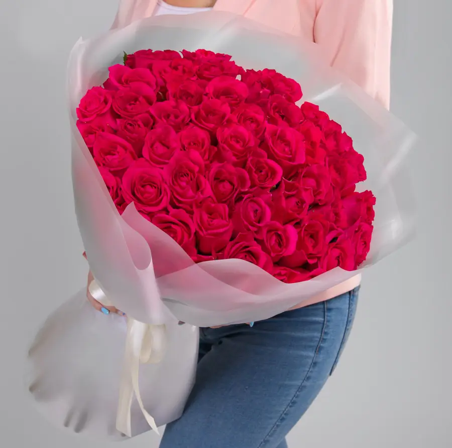 51 Малиновая Роза в упаковке — отличный выбор для подарка! На сайте вы найдете красочные фотографии, которые помогут сделать выбор. Цена букета — 14810 руб.. Закажите 51 Малиновая Роза в упаковке с доставкой в Нижнем Новгороде и по области.