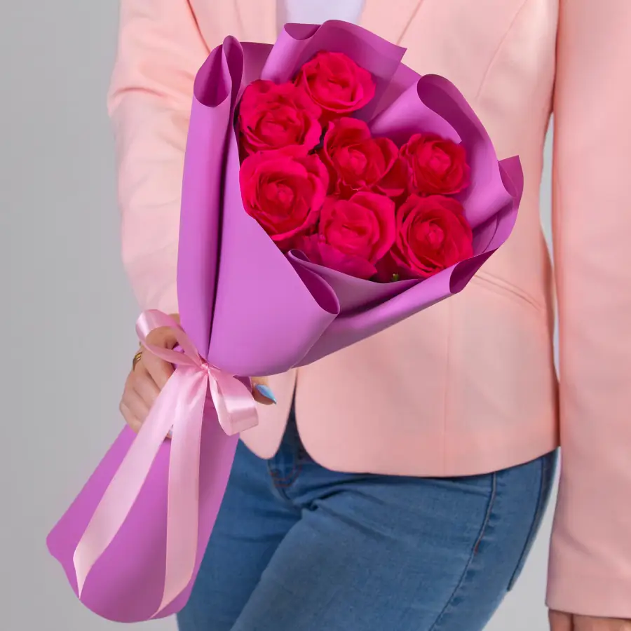 7 Малиновых Роз в упаковке — купить по цене от 2920 руб. с доставкой в Нижнем Новгороде