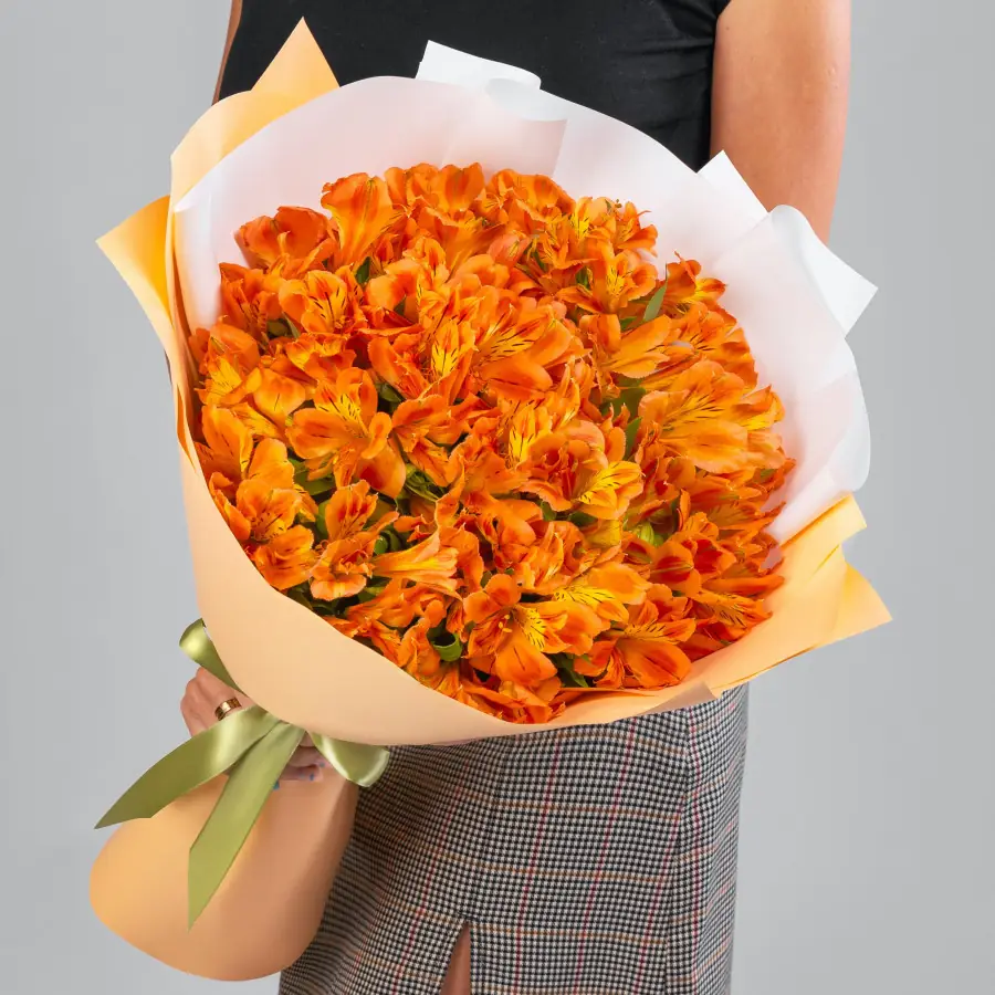 На фото - 19 Оранжевых Альстромерий в упаковке . В составе данной композиции: Альстромерия - 19 шт, Дизайнерская упаковка, Лента атласная , . На сайте sbuket-nn.ru Вы найдете большой выбор недорогих букетов, цветочных композиций для любого повода. У нас можно заказать 19 Оранжевых Альстромерий в упаковке за 5090 руб.
