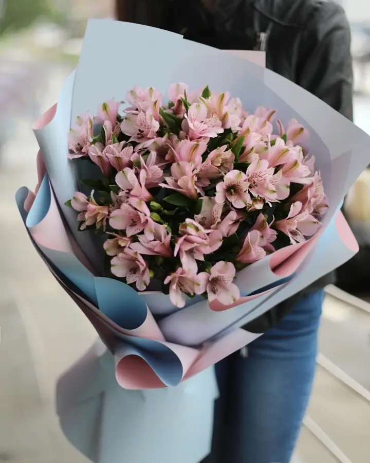 На фото - 21 Светлая Альстромерия в упаковке . В составе данной композиции: Альстромерия - 21 шт, Дизайнерская упаковка, Лента атласная , . На сайте sbuket-nn.ru Вы найдете большой выбор недорогих букетов, цветочных композиций для любого повода. У нас можно заказать 21 Светлая Альстромерия в упаковке за 5660 руб.