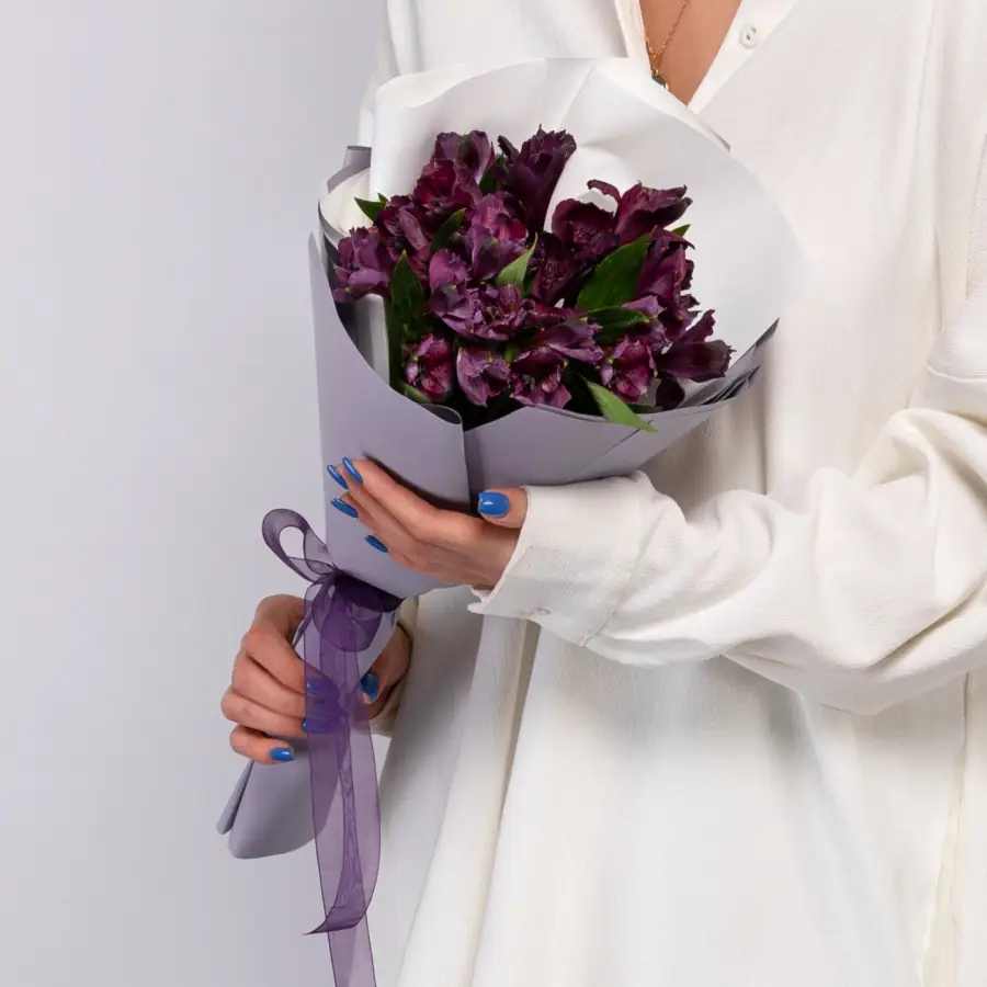 5 Фиалковых Альстромерий в упаковке — купить по цене от 2100 руб. с доставкой в Нижнем Новгороде