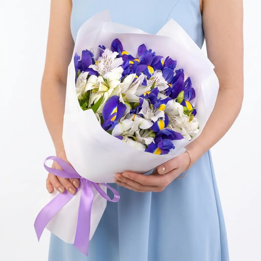 Букет из ирисов и белой альстромерии — купить по цене от 3590 руб. с доставкой в Нижнем Новгороде