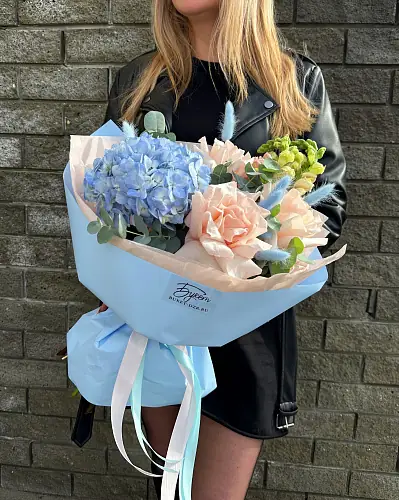 Букет с голубой гортензией и розой — купить по цене от 3530 руб. с доставкой в Нижнем Новгороде