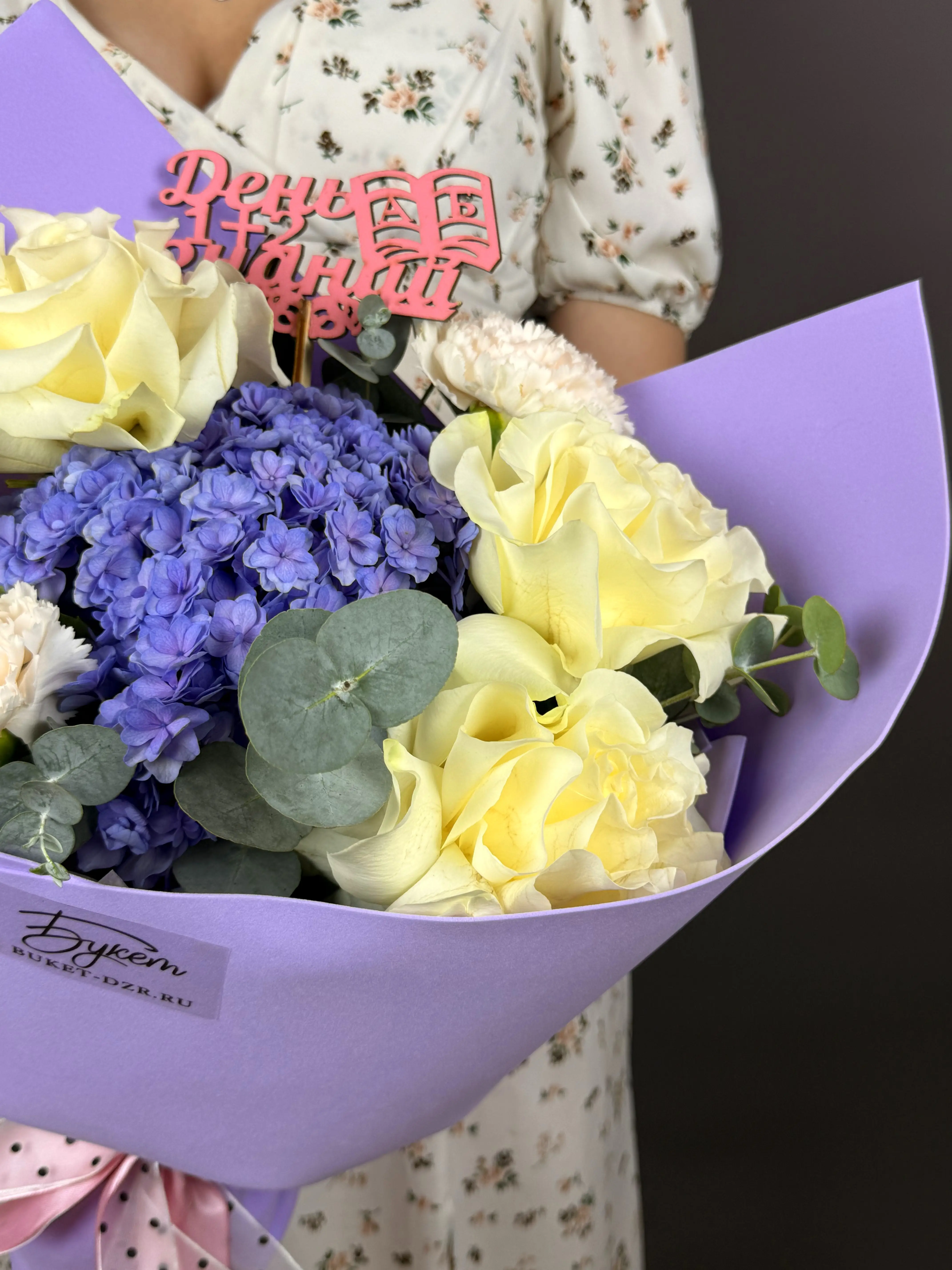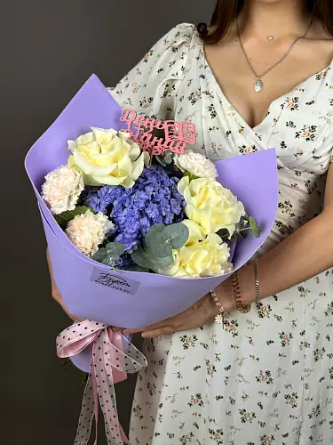 Букет цветов с гортензией в стильной упаковке — купить по цене от 3520 руб. с доставкой в Нижнем Новгороде