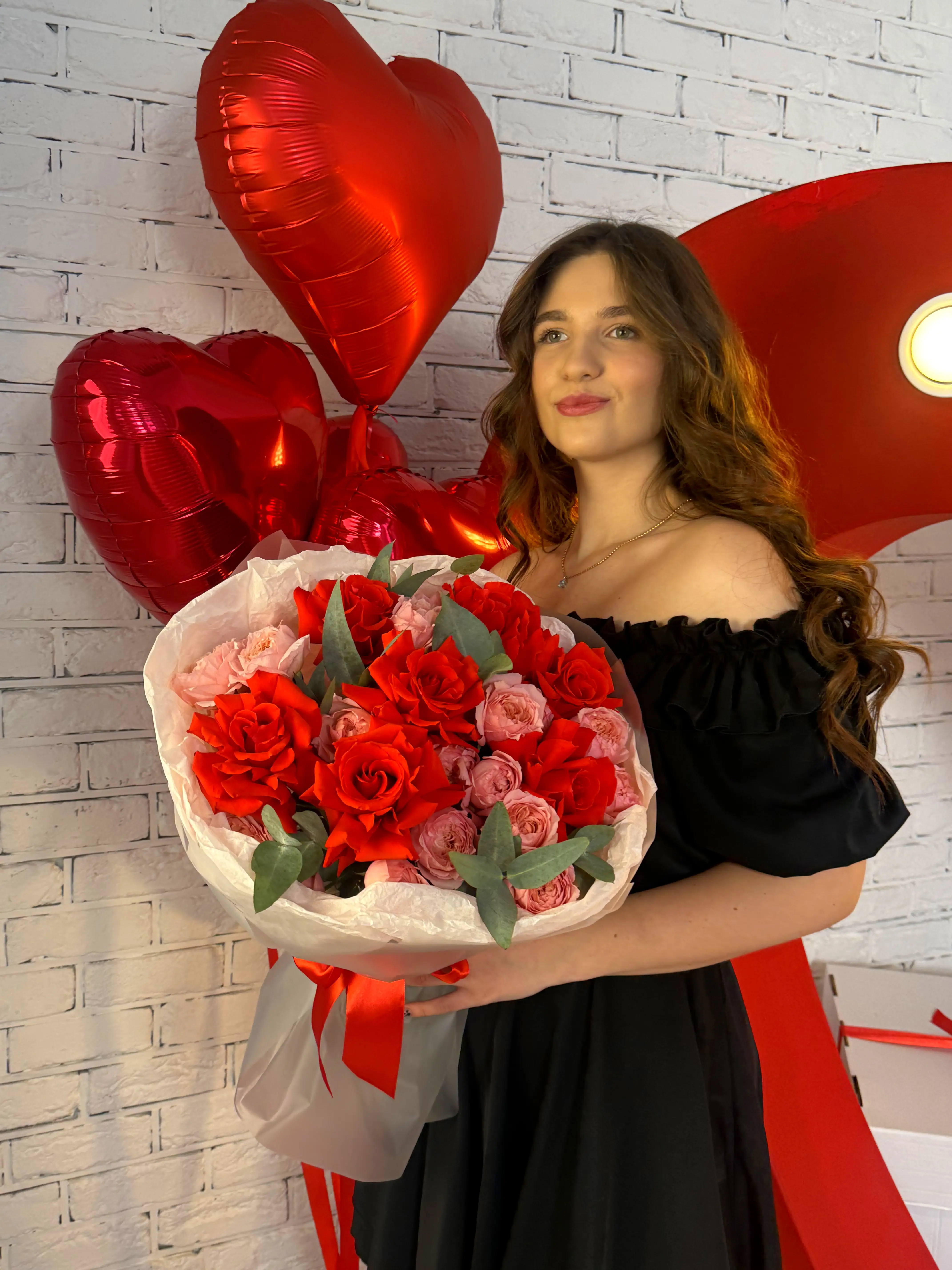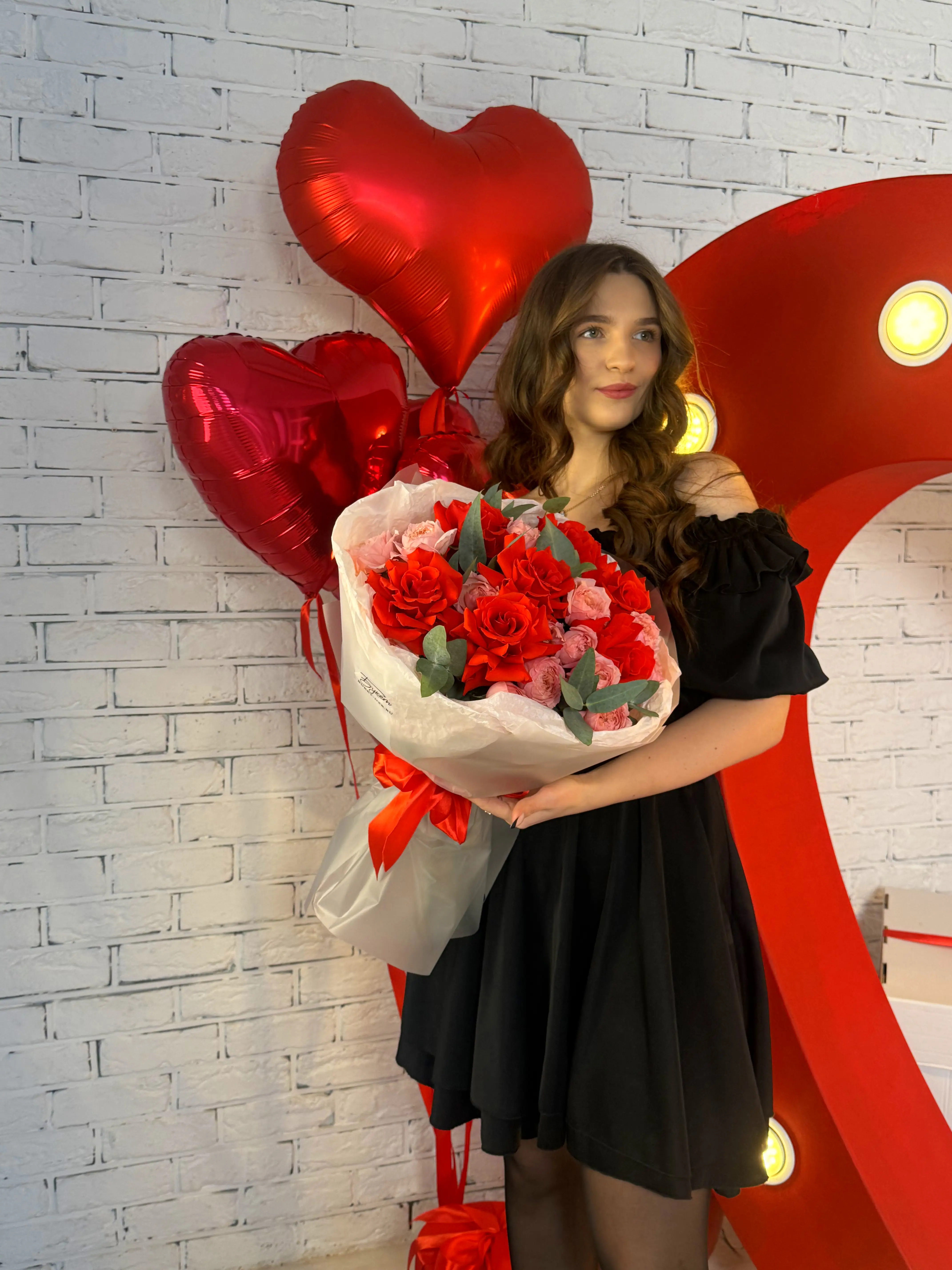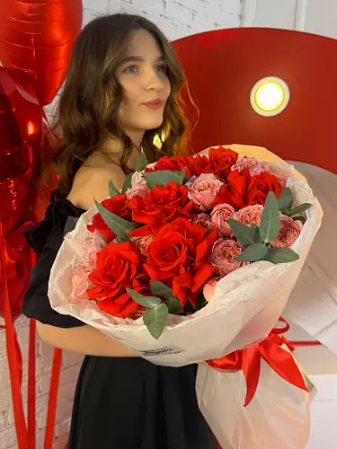 Соберем в день доставки, только из свежих цветов и затем с улыбкой вручим получателю.