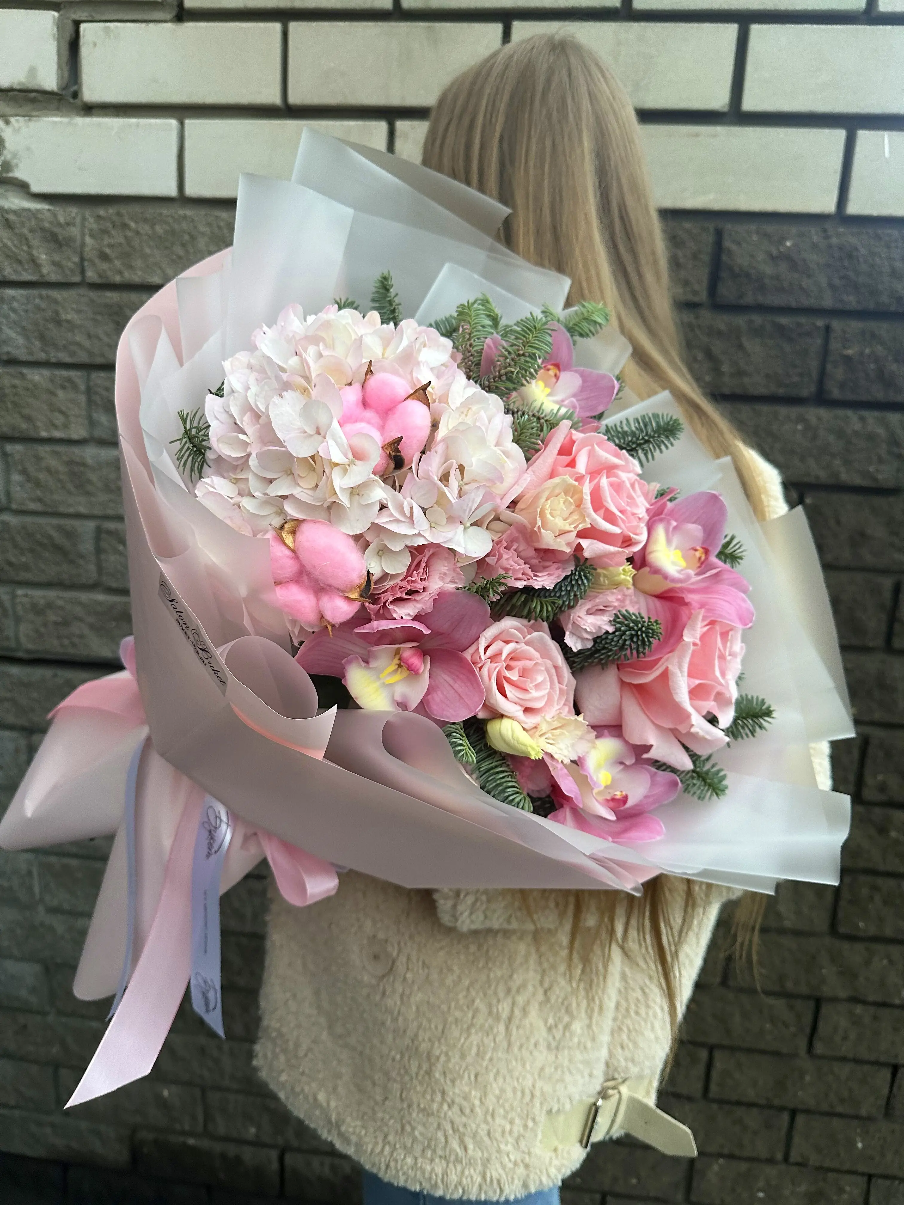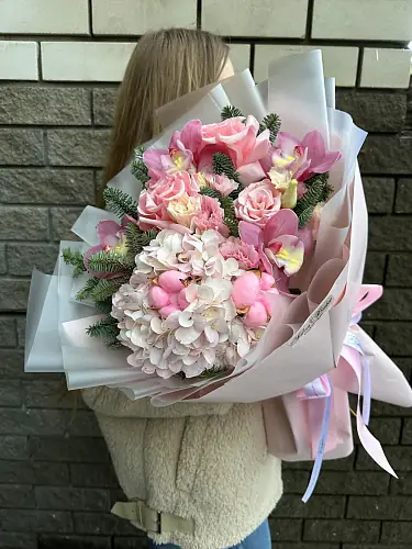 Соберем в день доставки, только из свежих цветов и затем с улыбкой вручим получателю.