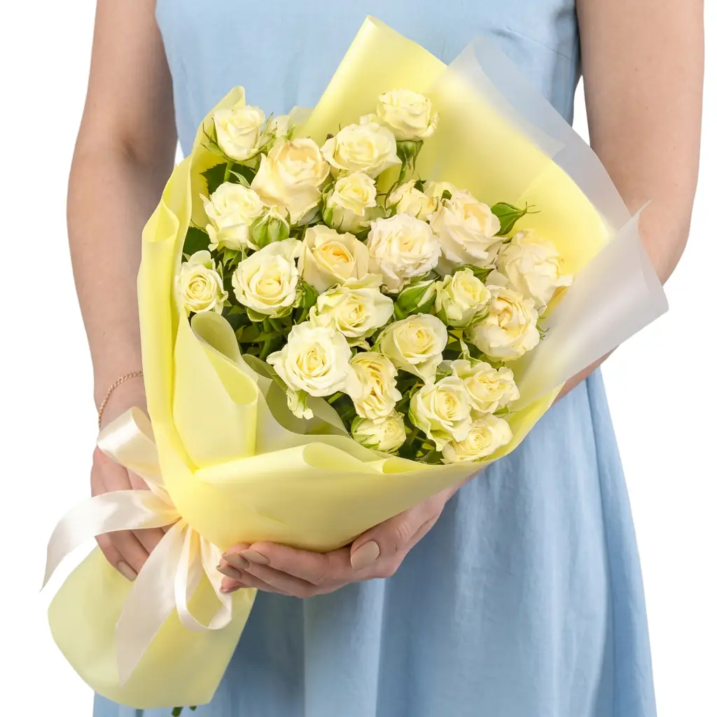 Букет 11 Кустовых Белых Роз в упаковке — купить по цене от 5500 руб. с доставкой в Нижнем Новгороде