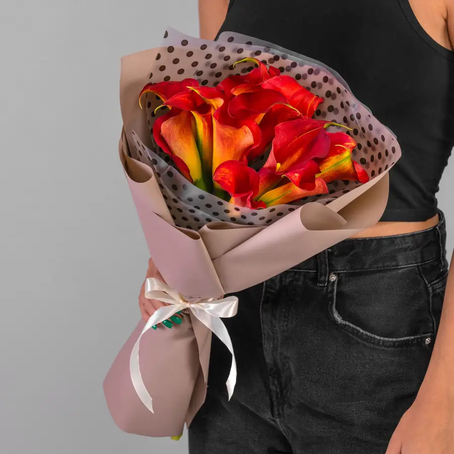 11 Оранжевых Калл в упаковке — купить по цене от 6810 руб. с доставкой в Нижнем Новгороде
