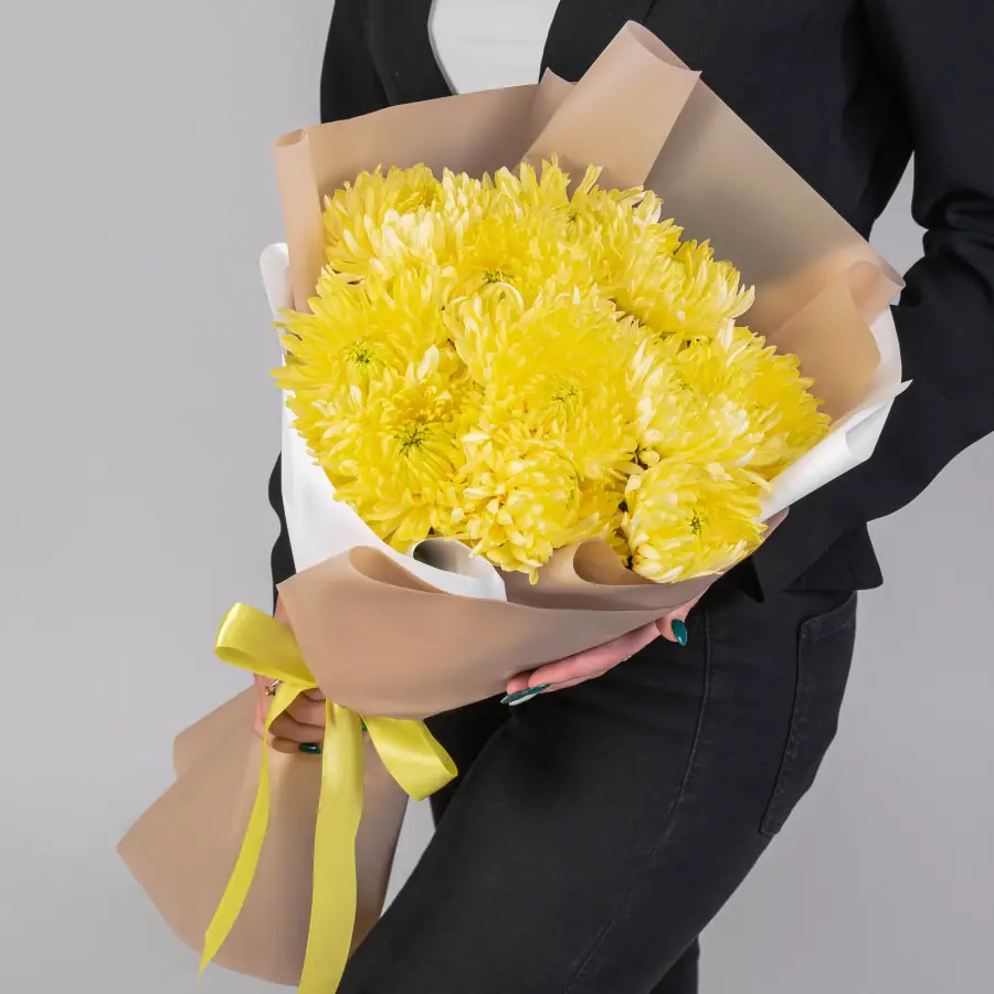 11 Желтых Игольчатых Хризантем в упаковке — купить по цене от 6160 руб. с доставкой в Нижнем Новгороде