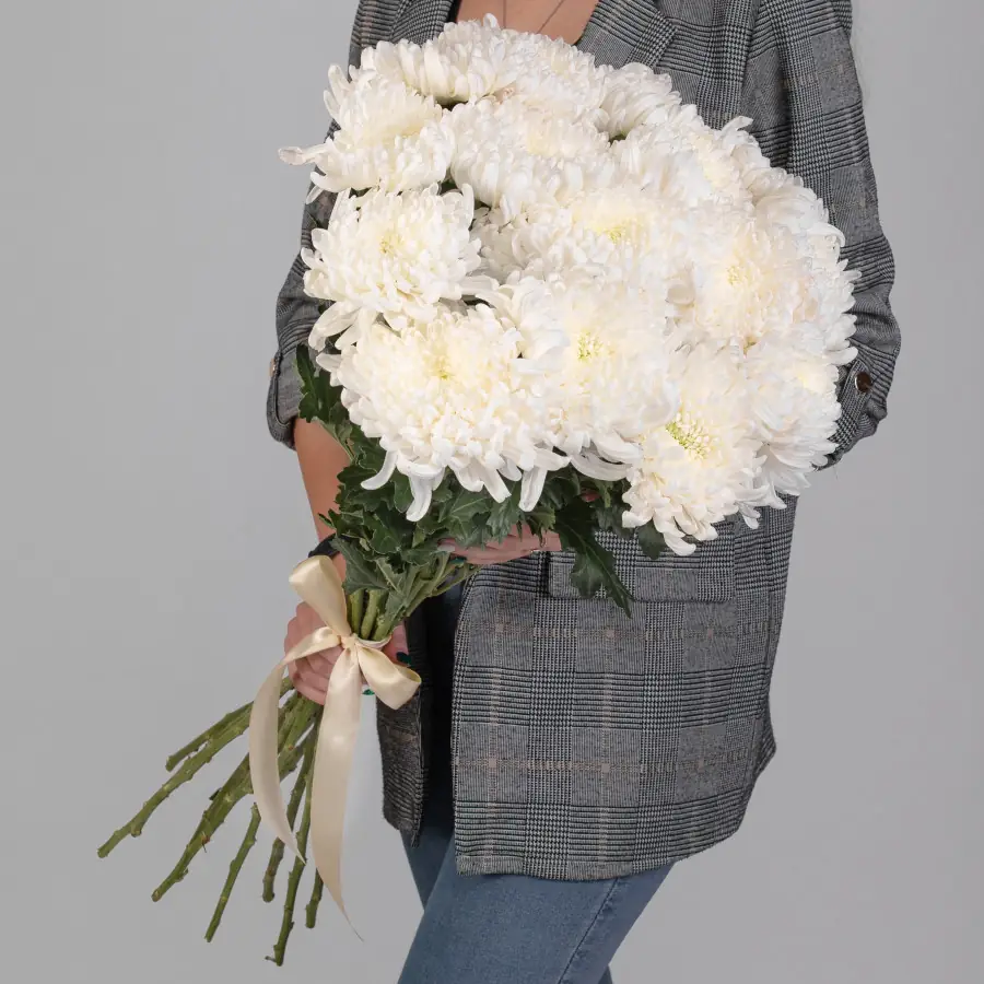 Кремовые Хризантемы под ленту — купить по цене от 7700 руб. с доставкой в Нижнем Новгороде