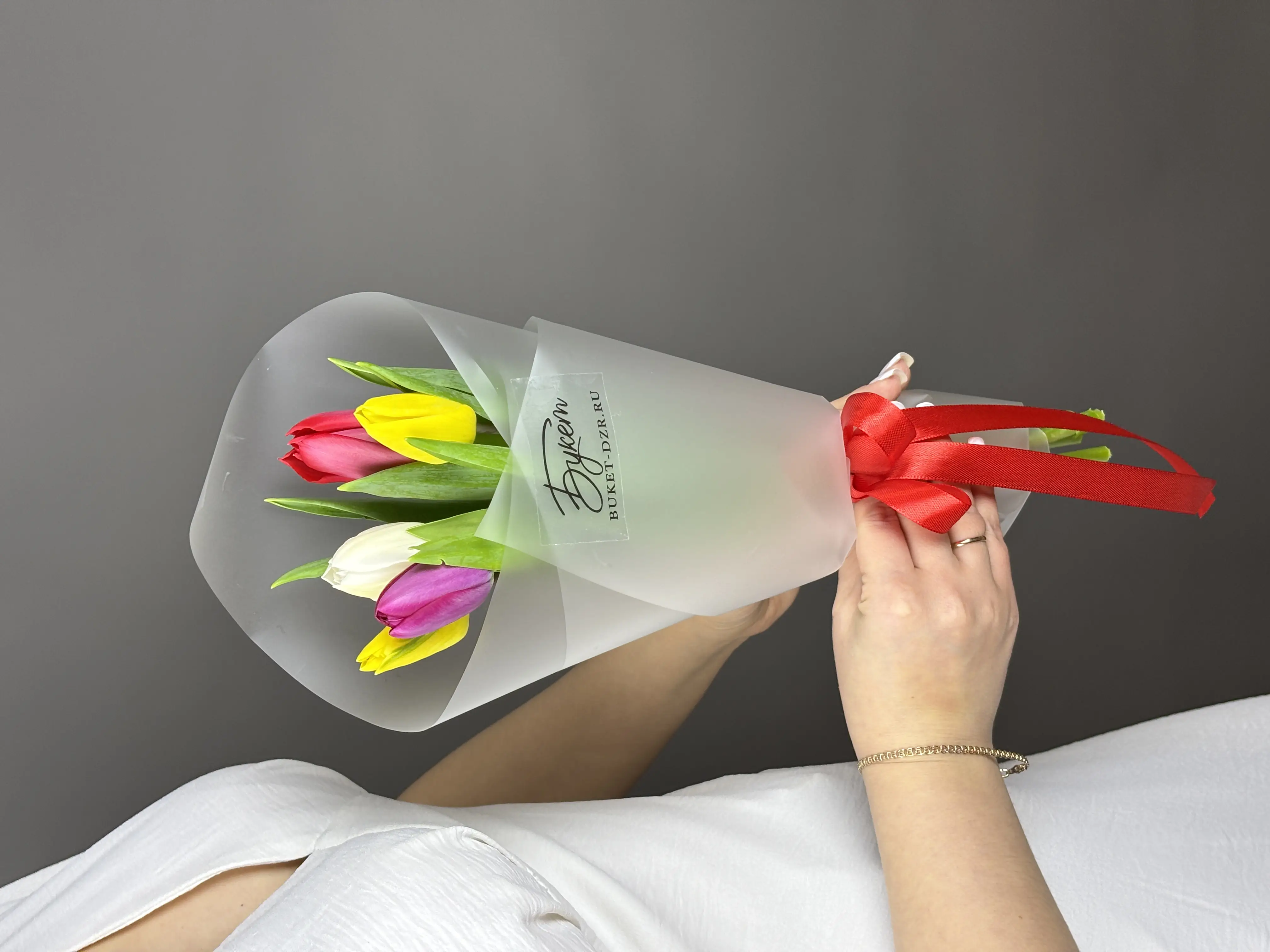 5 Ярких разноцветных Тюльпанов — купить по цене от 1800 руб. с доставкой в Нижнем Новгороде