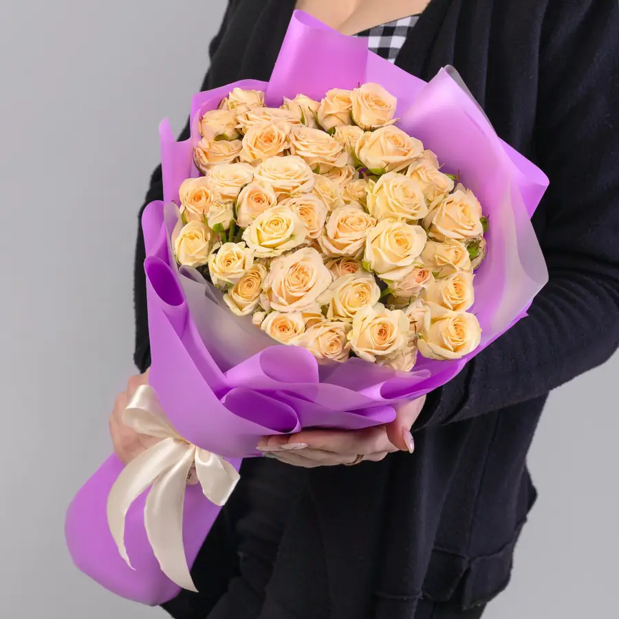 15 бежевых роз в упаковке