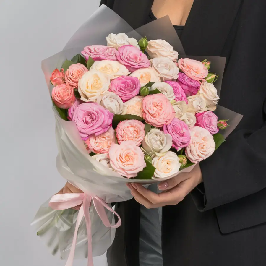 Соберем в день доставки, только из свежих цветов и затем с улыбкой вручим получателю.