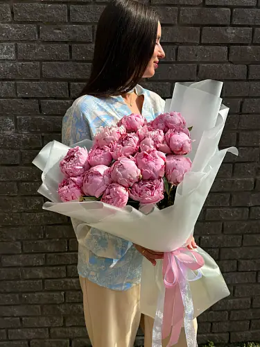 15 Пионов в стильной упаковке — купить по цене от 13550 руб. с доставкой в Нижнем Новгороде
