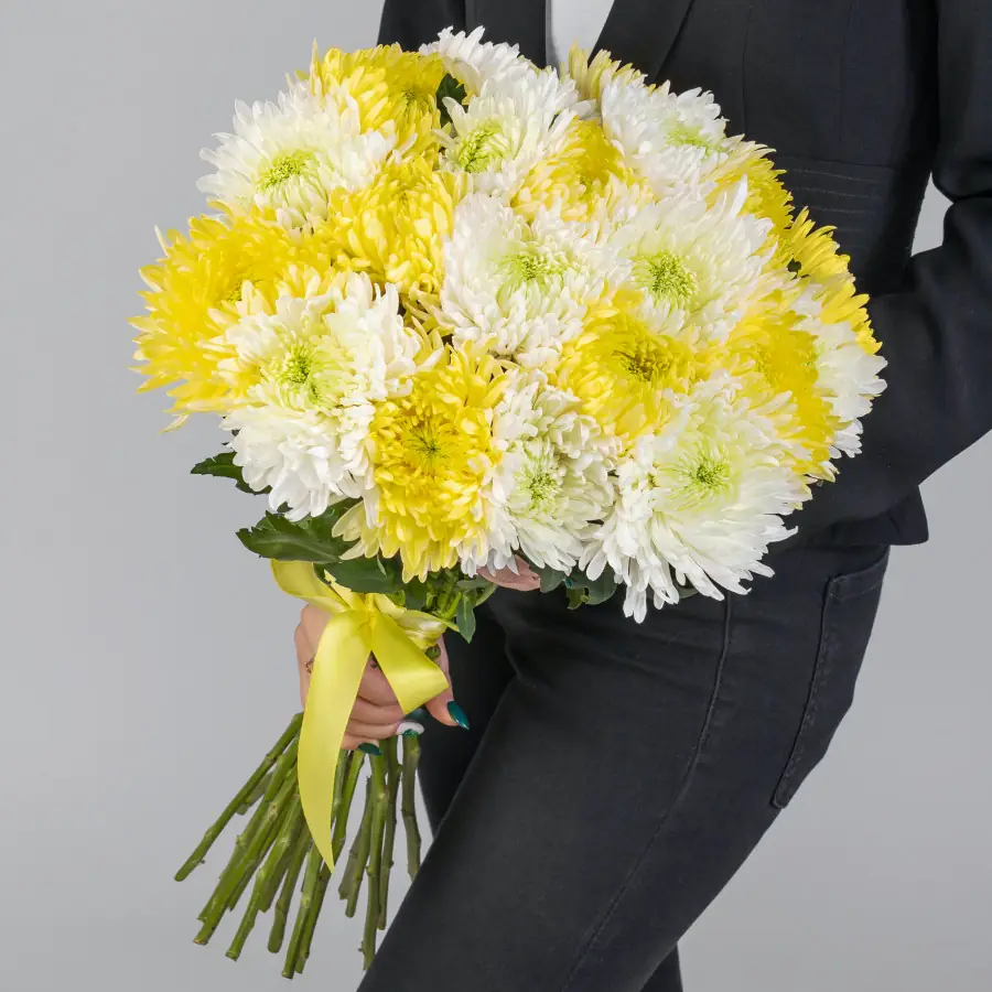19 Бело-Желтых Игольчатых Хризантем — купить по цене от 9540 руб. с доставкой в Нижнем Новгороде