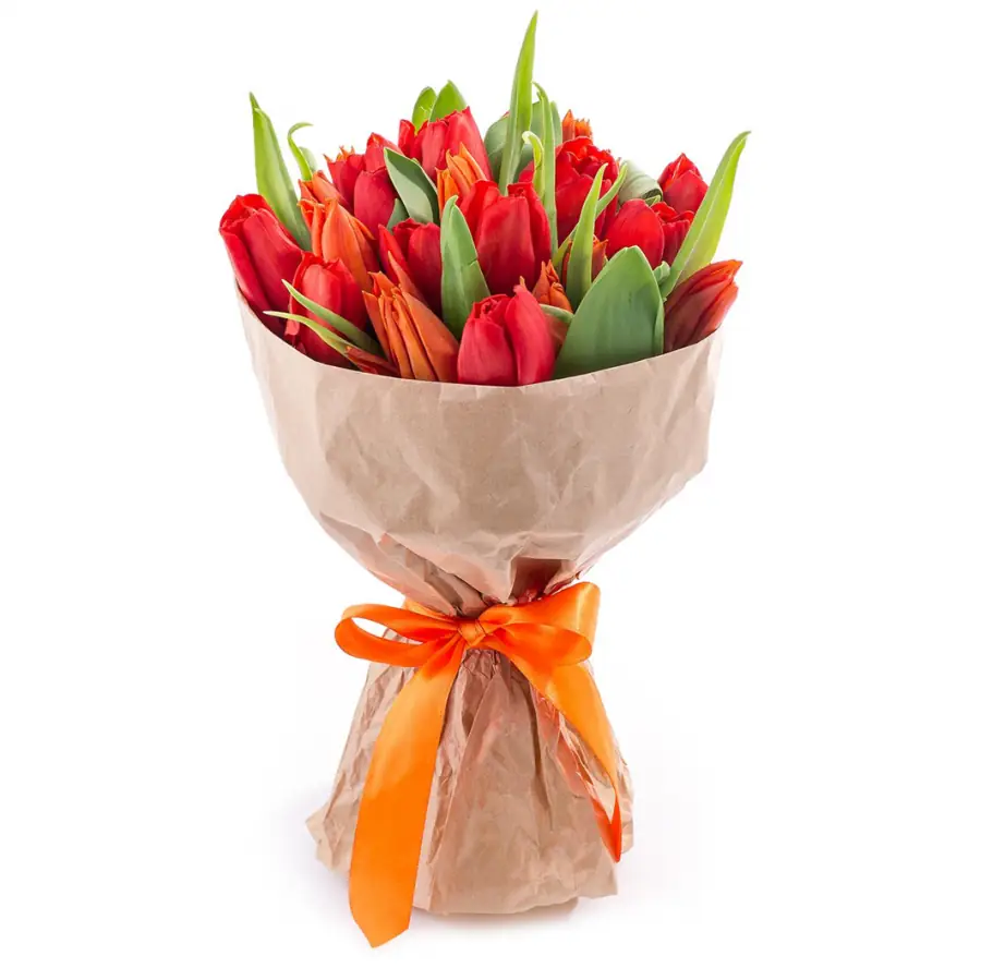 Букет из Тюльпанов Красно-Оранжевых 19 шт — купить по цене от 4890 руб. с доставкой в Нижнем Новгороде