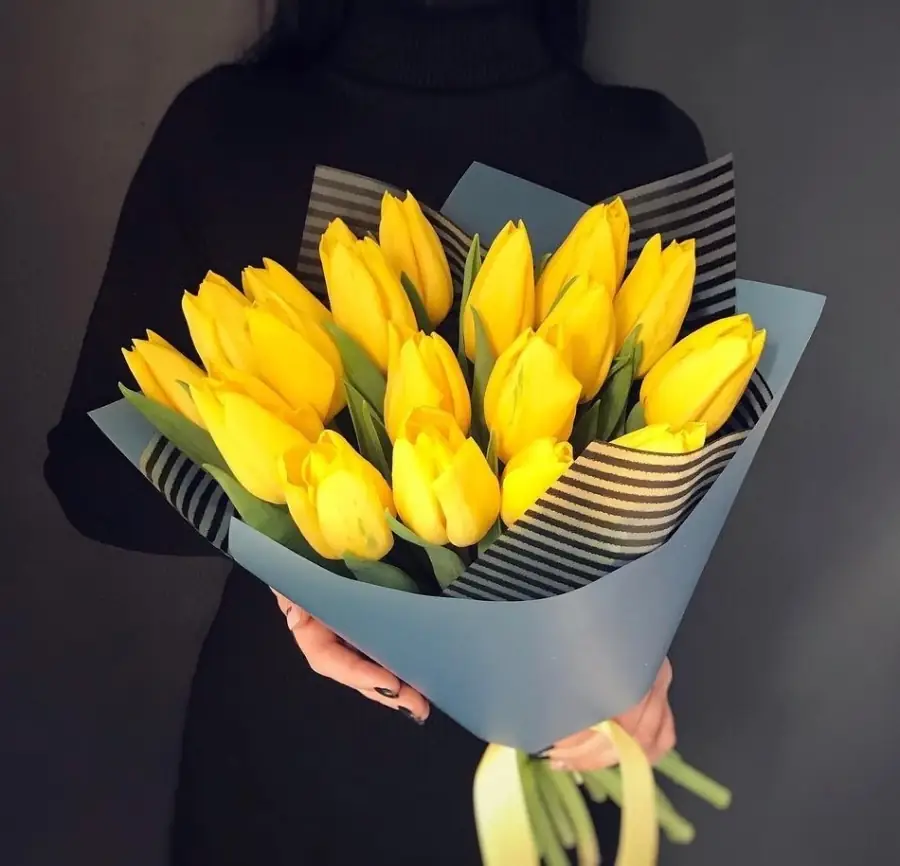 Букет 19 Желтых Тюльпанов — купить по цене от 5040 руб. с доставкой в Нижнем Новгороде