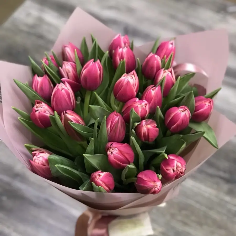На фото - 25 Тюльпанов Колумбус. В составе данной композиции: Тюльпан - 25 шт, Упаковка, Лента атласная. На сайте sbuket-nn.ru Вы найдете большой выбор недорогих букетов, цветочных композиций для любого повода. У нас можно заказать 25 Тюльпанов Колумбус за 6200 руб.