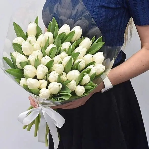 Букет из белых Тюльпанов 35 шт — купить по цене от 8250 руб. с доставкой в Нижнем Новгороде