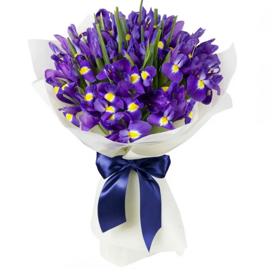 На фото - 35 Ирисов. В составе данной композиции: Ирис - 35 шт., Упаковка, Лента атласная, . На сайте sbuket-nn.ru Вы найдете большой выбор недорогих букетов, цветочных композиций для любого повода. У нас можно заказать 35 Ирисов за 5750 руб.