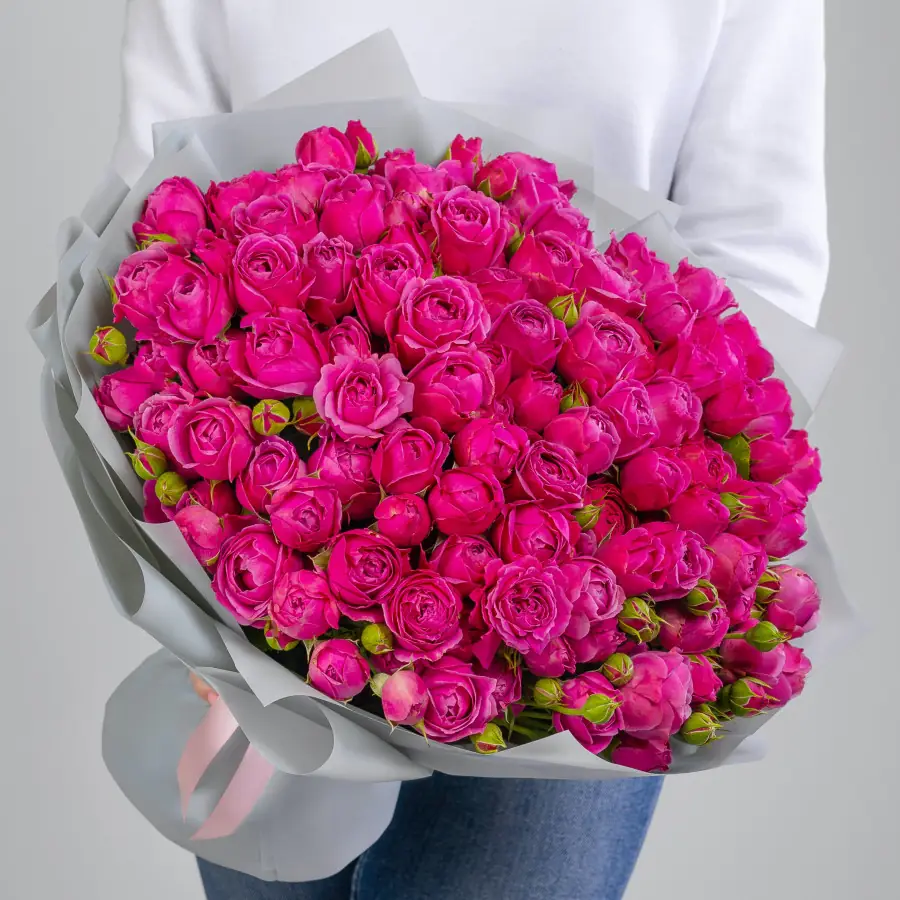 45 Пионовидных кустовых роз малинового цветы — купить по цене от 14600 руб. с доставкой в Нижнем Новгороде