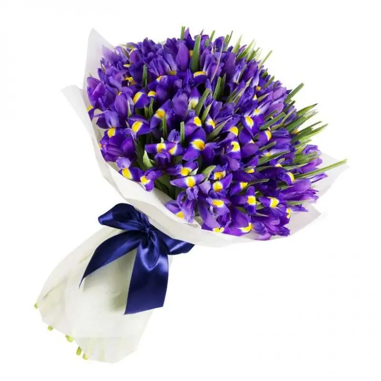 На фото - 45 Ирисов в белой упаковке. В составе данной композиции: Ирис - 45 шт.