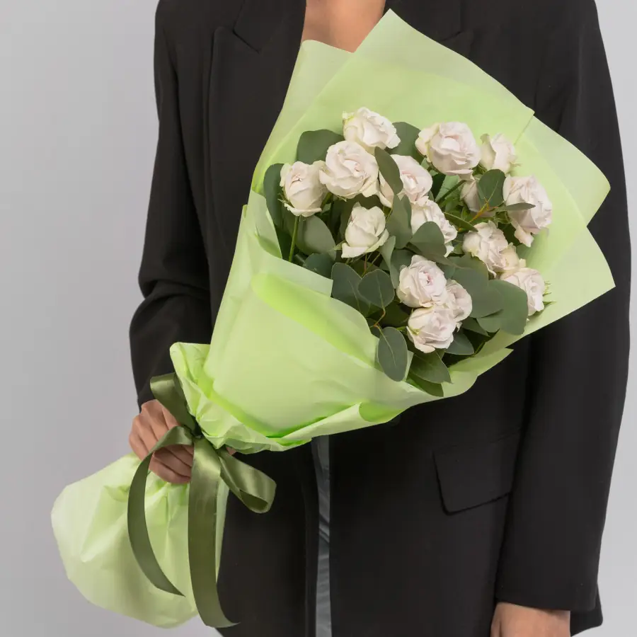 5 Кустовых Пионовидных Роз с эвкалиптом — купить по цене от 3500 руб. с доставкой в Нижнем Новгороде