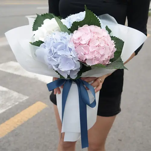 На фото - 5 Нежных Гортензий. В составе данной композиции: Гортензия Голубая - 2 шт., Гортензия Белая - 2 шт., Гортензия Нежно-Розовая - 1 шт., Упаковка, Лента атласная, . На сайте sbuket-nn.ru Вы найдете большой выбор недорогих букетов, цветочных композиций для любого повода. У нас можно заказать 5 Нежных Гортензий за 4600 руб.