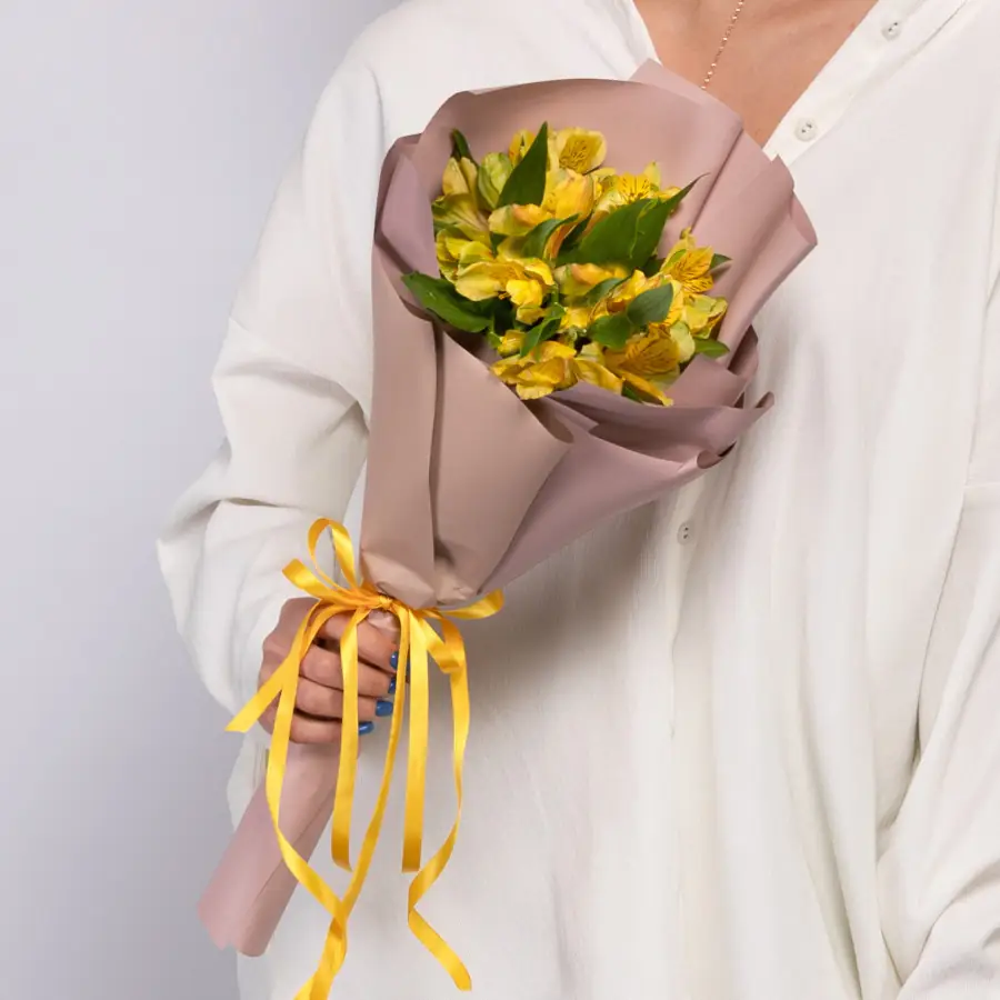 Альстромерия Желтая - 5 шт. Упаковка Лента