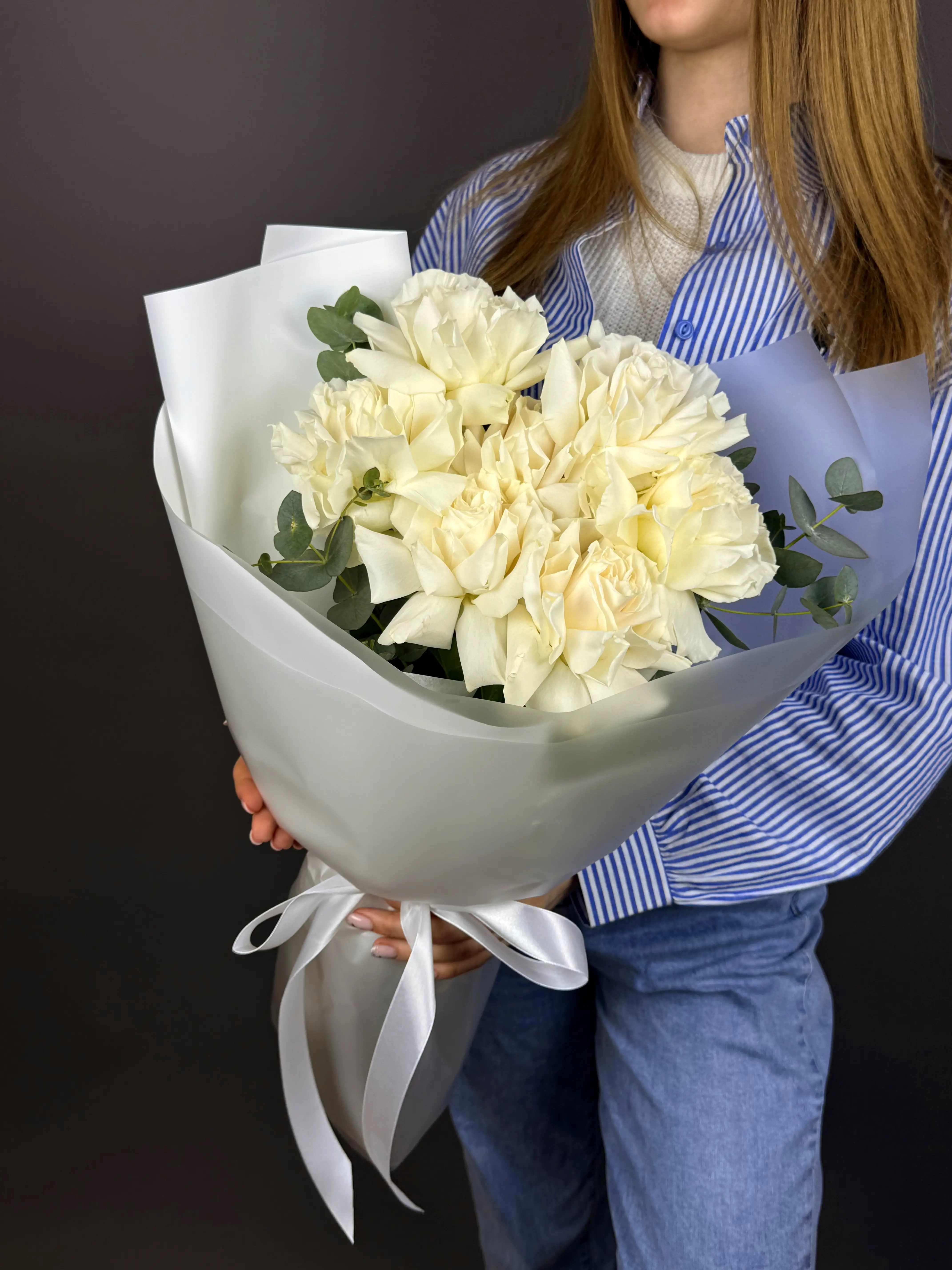7 Белых роз с эвкалиптом — купить по цене от 3445 руб. с доставкой в Нижнем Новгороде