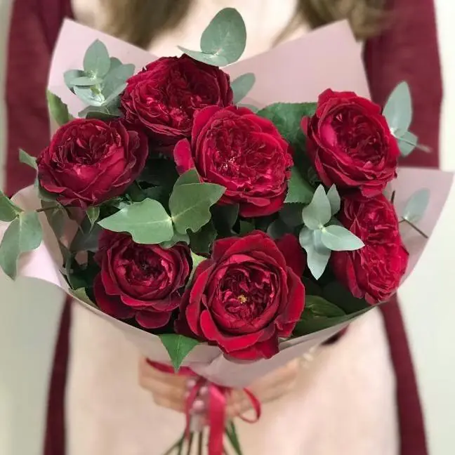 Розы пионовидные 7 шт с эвкалиптом — купить по цене от 3400 руб. с доставкой в Нижнем Новгороде