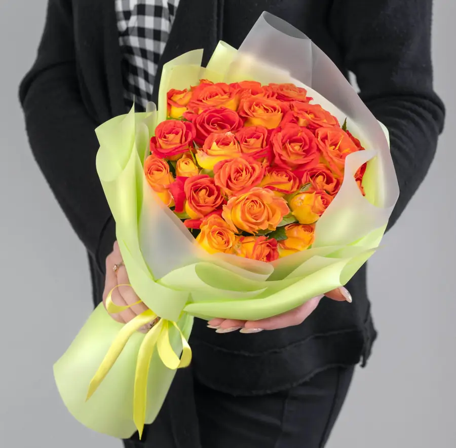 9 Кустовых Оранжевых Роз в упаковке — купить по цене от 3650 руб. с доставкой в Нижнем Новгороде