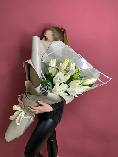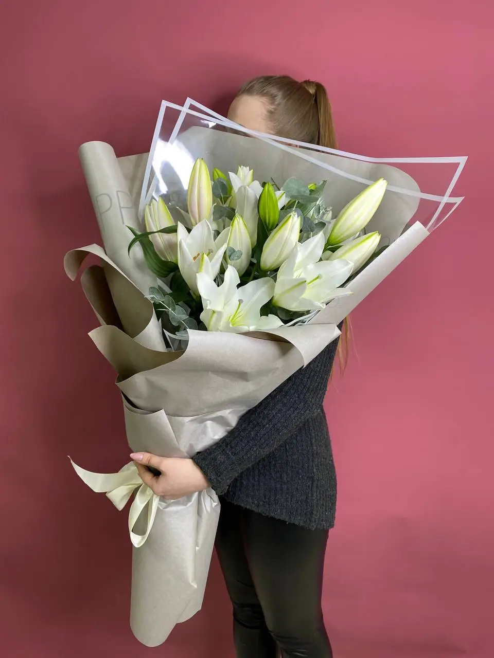 Авторский букет с лилией в упаковке — купить по цене от 5250 руб. с доставкой в Нижнем Новгороде