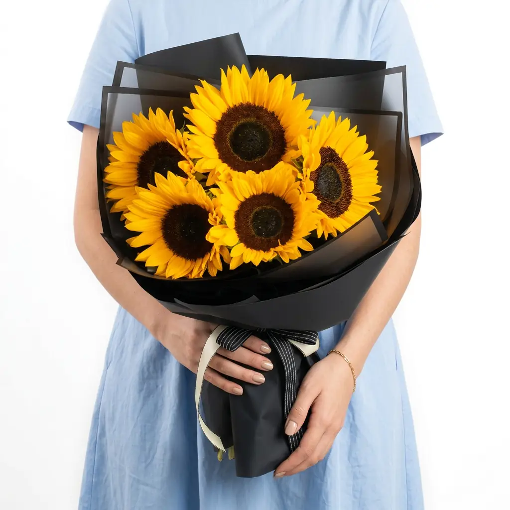 Букет "5 Подсолнухов" в упаковке