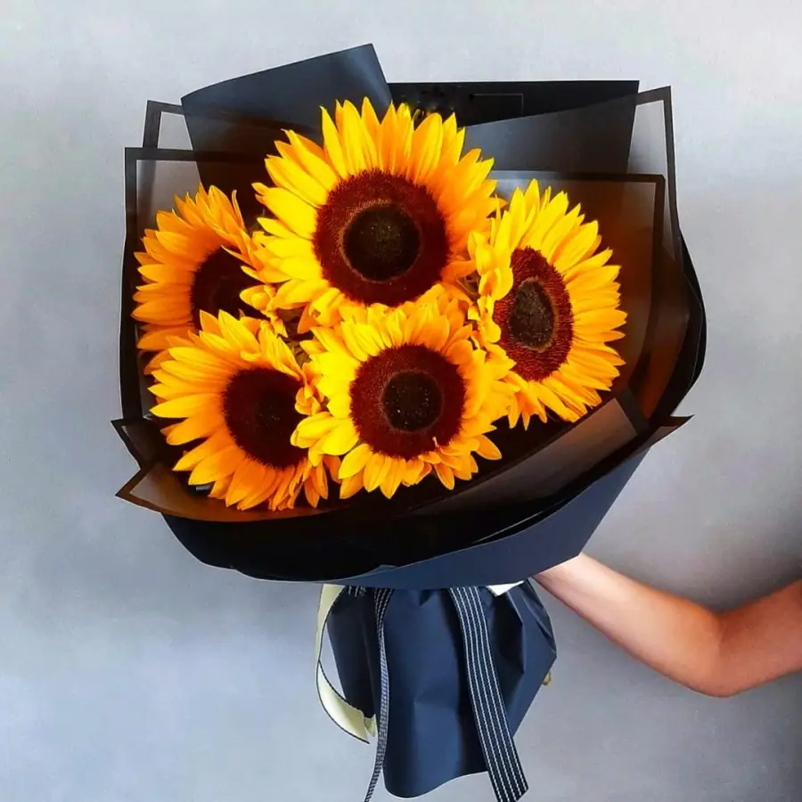 Букет "5 Подсолнухов" в упаковке — купить по цене от 2900 руб. с доставкой в Нижнем Новгороде