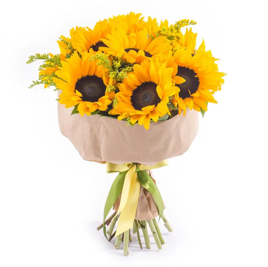 9 Подсолнухов в дизайнерском крафте — купить по цене от 4250 руб. с доставкой в Нижнем Новгороде